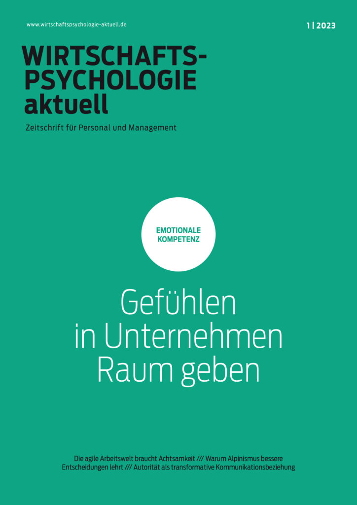 Wirtschaftspsychologie aktuell – Zeitschrift für Personal und Management – erscheint viermal im Jahr und ist das führende Fachmagazin für wirtschaftspsychologische Themen und Trends. Fachleute aus Wissenschaft und Praxis berichten hier fundiert und anschaulich über psychologische Erkenntnisse aus der Forschung und deren Umsetzung in Unternehmen. Die Zeitschrift ist zudem das Verbandsorgan der Sektion Wirtschaftspsychologie im Berufsverband Deutscher Psychologinnen und Psychologen e.V. (BDP).…