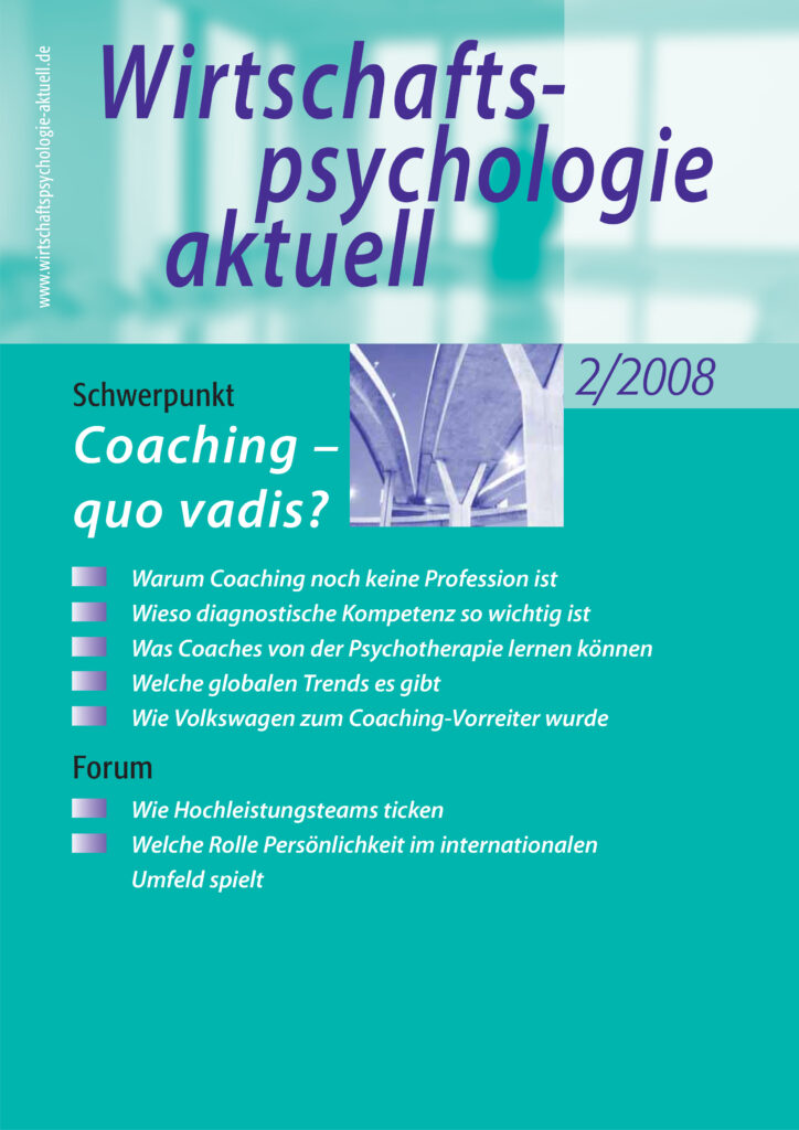 Wirtschaftspsychologie aktuell – Zeitschrift für Personal und Management – erscheint viermal im Jahr und ist das führende Fachmagazin für wirtschaftspsychologische Themen und Trends. Fachleute aus Wissenschaft und Praxis berichten hier fundiert und anschaulich über psychologische Erkenntnisse aus der Forschung und deren Umsetzung in Unternehmen. Die Zeitschrift ist zudem das Verbandsorgan der Sektion Wirtschaftspsychologie im Berufsverband Deutscher Psychologinnen und Psychologen e.V. (BDP).…