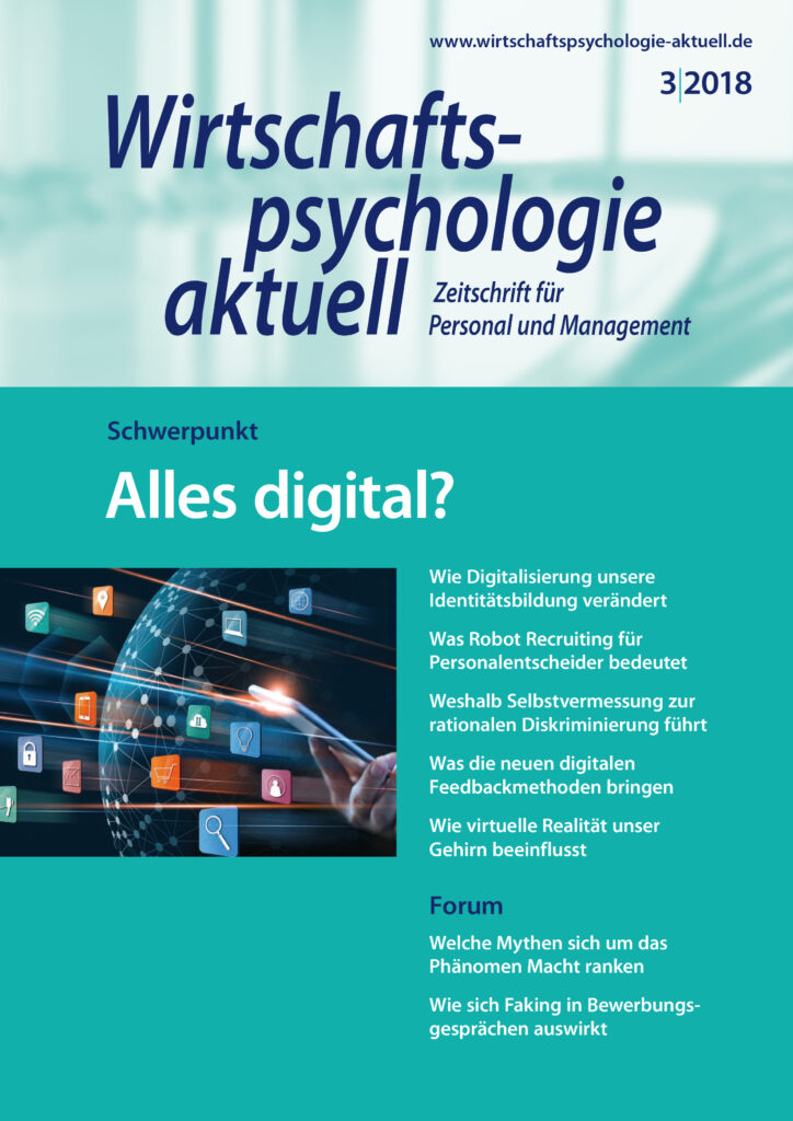 Wirtschaftspsychologie aktuell – Zeitschrift für Personal und Management – erscheint viermal im Jahr und ist das führende Fachmagazin für wirtschaftspsychologische Themen und Trends. Fachleute aus Wissenschaft und Praxis berichten hier fundiert und anschaulich über psychologische Erkenntnisse aus der Forschung und deren Umsetzung in Unternehmen. Die Zeitschrift ist zudem das Verbandsorgan der Sektion Wirtschaftspsychologie im Berufsverband Deutscher Psychologinnen und Psychologen e.V. (BDP).…