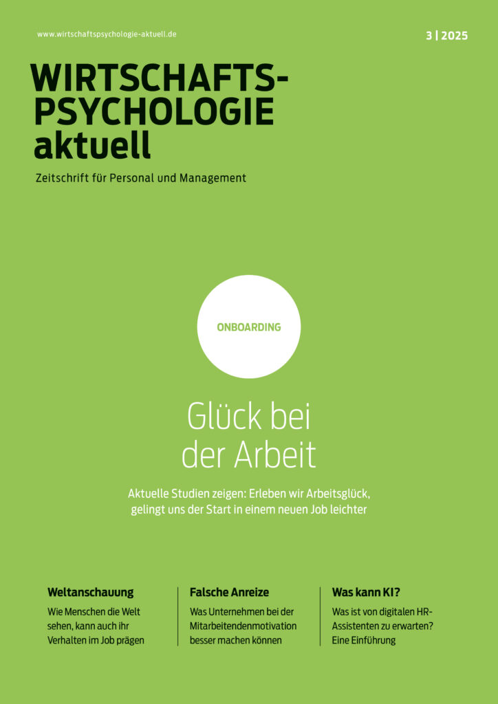 Wirtschaftspsychologie aktuell – Zeitschrift für Personal und Management – erscheint viermal im Jahr und ist das führende Fachmagazin für wirtschaftspsychologische Themen und Trends. Fachleute aus Wissenschaft und Praxis berichten hier fundiert und anschaulich über psychologische Erkenntnisse aus der Forschung und deren Umsetzung in Unternehmen. Die Zeitschrift ist zudem das Verbandsorgan der Sektion Wirtschaftspsychologie im Berufsverband Deutscher Psychologinnen und Psychologen e.V. (BDP).…