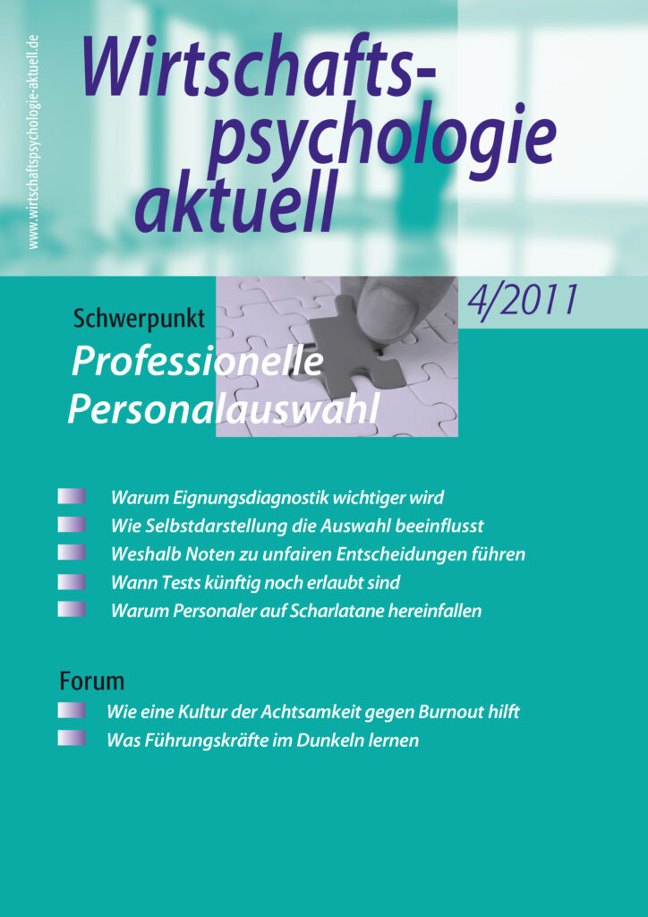 Wirtschaftspsychologie aktuell – Zeitschrift für Personal und Management – erscheint viermal im Jahr und ist das führende Fachmagazin für wirtschaftspsychologische Themen und Trends. Fachleute aus Wissenschaft und Praxis berichten hier fundiert und anschaulich über psychologische Erkenntnisse aus der Forschung und deren Umsetzung in Unternehmen. Die Zeitschrift ist zudem das Verbandsorgan der Sektion Wirtschaftspsychologie im Berufsverband Deutscher Psychologinnen und Psychologen e.V. (BDP).…