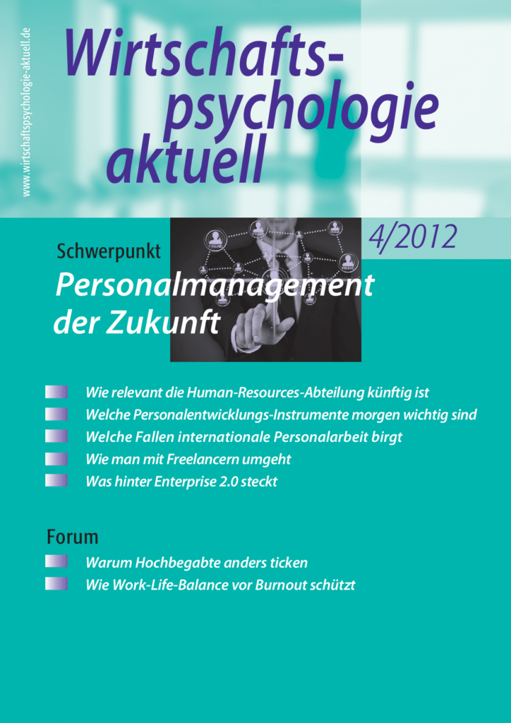 Wirtschaftspsychologie aktuell – Zeitschrift für Personal und Management – erscheint viermal im Jahr und ist das führende Fachmagazin für wirtschaftspsychologische Themen und Trends. Fachleute aus Wissenschaft und Praxis berichten hier fundiert und anschaulich über psychologische Erkenntnisse aus der Forschung und deren Umsetzung in Unternehmen. Die Zeitschrift ist zudem das Verbandsorgan der Sektion Wirtschaftspsychologie im Berufsverband Deutscher Psychologinnen und Psychologen e.V. (BDP).…