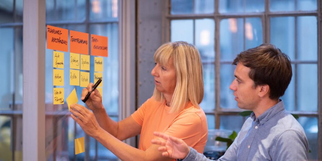 Erst vor kurzem haben wir ein Unternehmen begleitet, das an einen neuen Eigner verkauft wurde. Dabei hat sich viel verändert, und die Menschen wussten nicht mehr: Wofür stehen wir eigentlich als Organisation und wo wollen wir hin? Zusammen haben wir Visionen herausgearbeitet, also zum Beispiel, wo das Unternehmen in fünf Jahren stehen möchte. Welche Leistungen es anbieten möchte. Wie es sich anfühlen soll, dort zu arbeiten. Dann haben wir Maßnahmen überlegt, mit denen wir dieser Vision immer näherkommen können – und so kam der Prozess ins Rollen. Unsere Kund:innen setzen die Maßnahmen nach und nach um, während wir sie begleiten, beraten und überprüfen, dass der gewünschte Effekt erzielt wird.